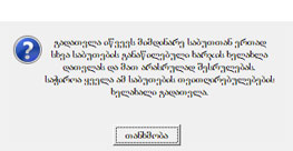 ბოლოს კი, თანხმობის ღილაკზე დაჭერით, პროგრამაში მიიღება შეტყობინება, რომ განაწილების შენახვა შეეხება განაწილებაში მონაწილე ყველა საბუთს.