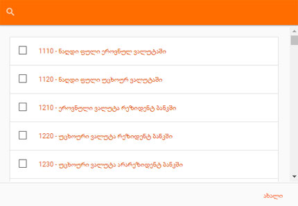 ღილაკზე დაჭერით მოხდება ანგარიშის/ქვეანგარიშის გახსნა და ოპერაციაში ავტომატურად შეივსება ანგარიშის ველი, რომლიდანაც მოხდა ანგარიშის არჩევანის გამოძახება.